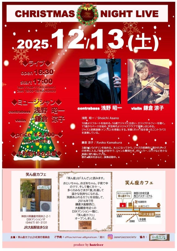 12月13日(土)笑ん座カフェ にて特別な Christmas Night Live